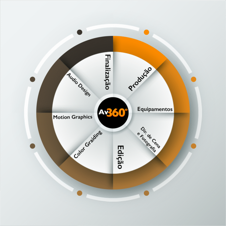 O Audiovisual 360 cobre todas as etapas da produção audiovisual. Você vai aprender desde a pré-produção e captação até a edição, colorimetria, efeitos gráficos (motion graphics) e finalização profissional. O objetivo é que você saiba criar vídeos do início ao fim, sem depender de terceiros.